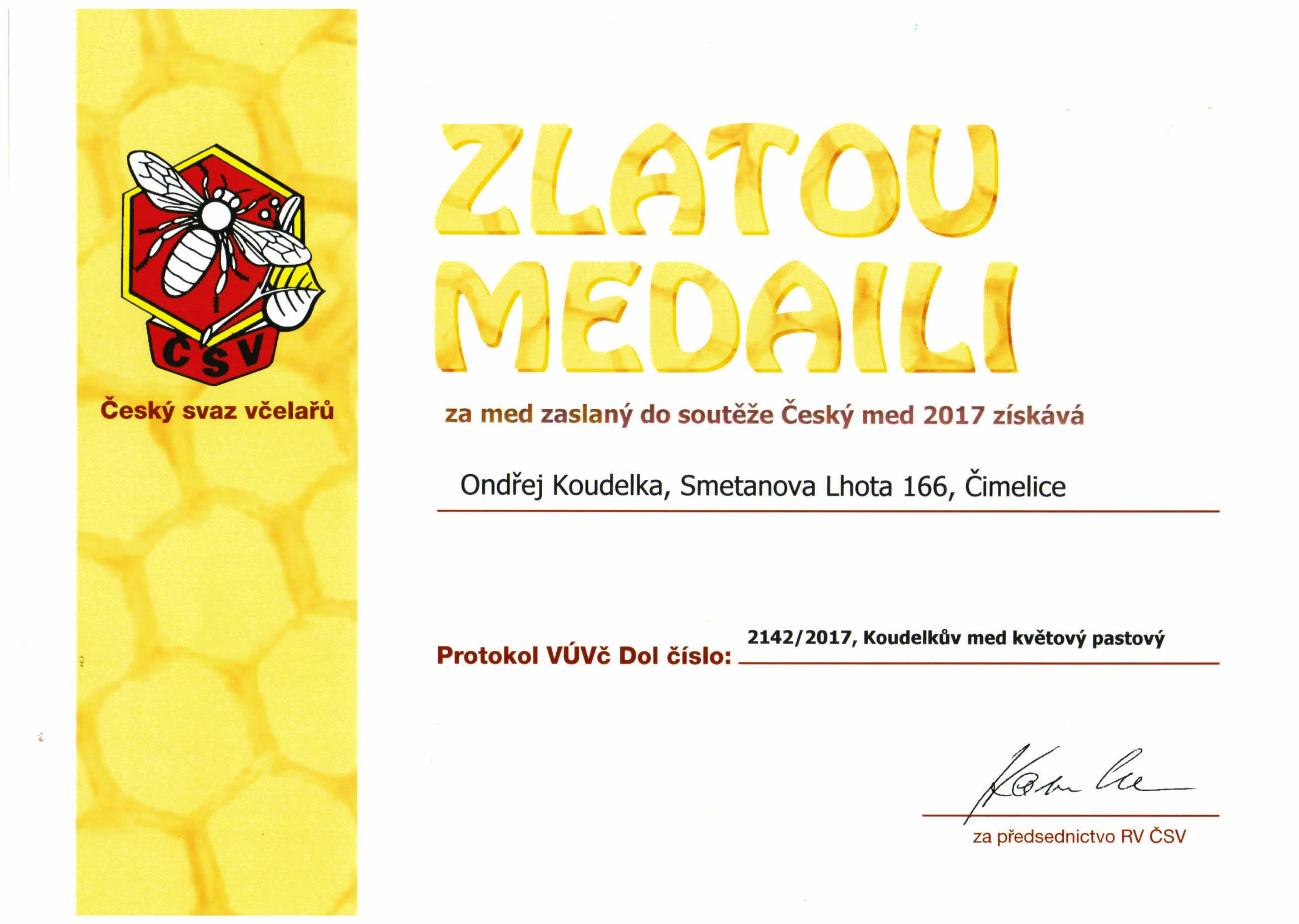 Koudelkův med opět získal zlatou medaili v soutěži ČESKÝ MED 2017.